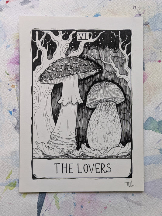 The Lovers Mushroom Tarot | Original Pen Drawing