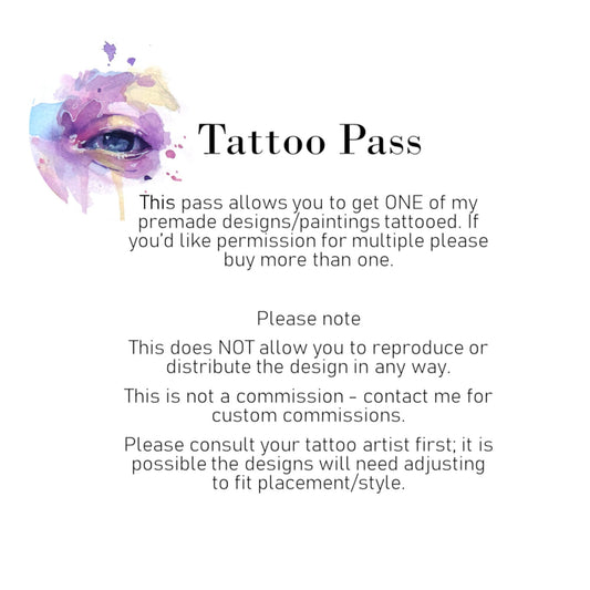 Tattoo Pass / Ticket | Permission to tattoo a premade design