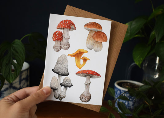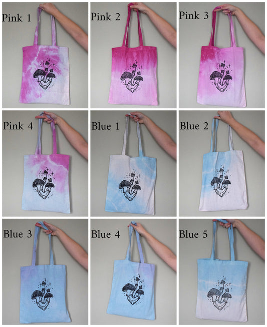 Hand tie-dyed & lino printed cotton tote bag | Fungi