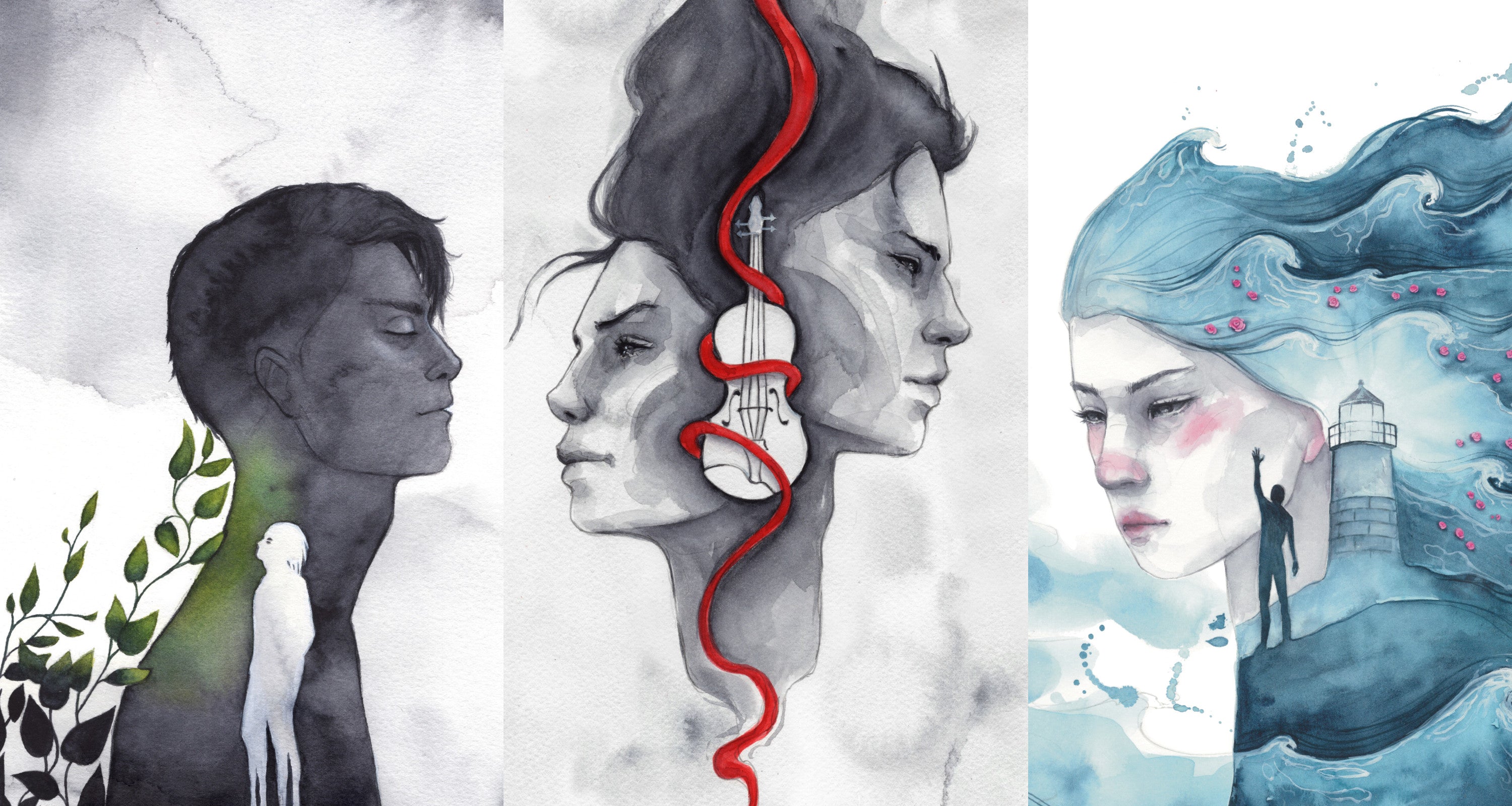 Most of my paintings use Winsor & Newton Professional Watercolours, as well as a small selection of other watercolour brands, ink and gouache. Original paintings use a mixture of papers, including Arches, Fabriano, CassArt, Bockingford and more. Other supplies, including acrylics, oil paints or oil pastels are Winsor & Newton, Sennelier, System3 or Liquitex.