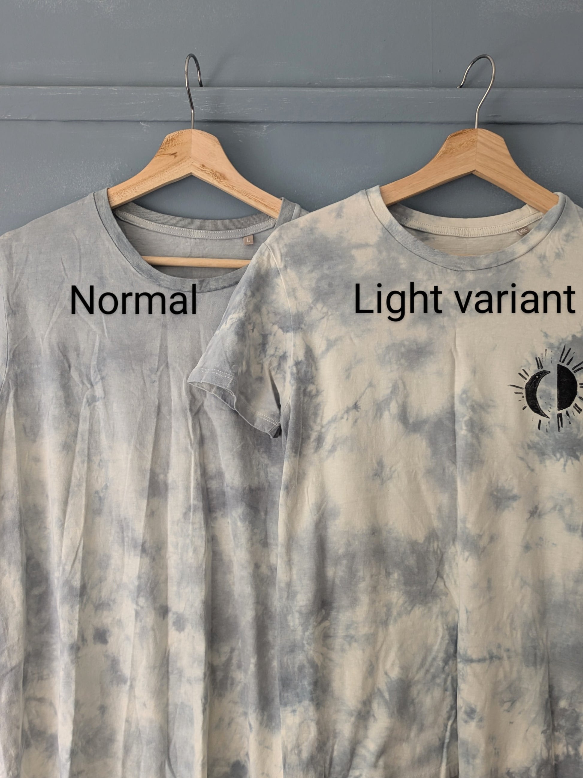 Light Variant - this has an all-over 'crumple' tie dye effect, compared to the standard variant that has a grey wash along the top.