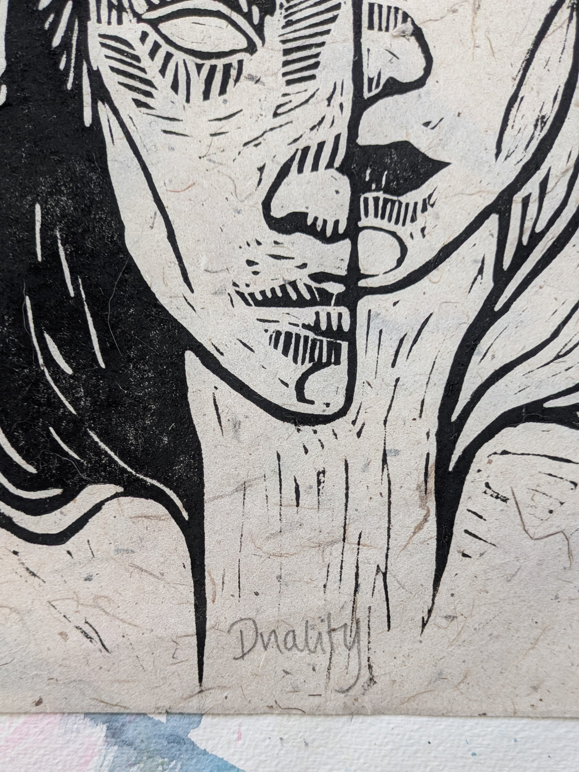 Lino print on mulberry paper.