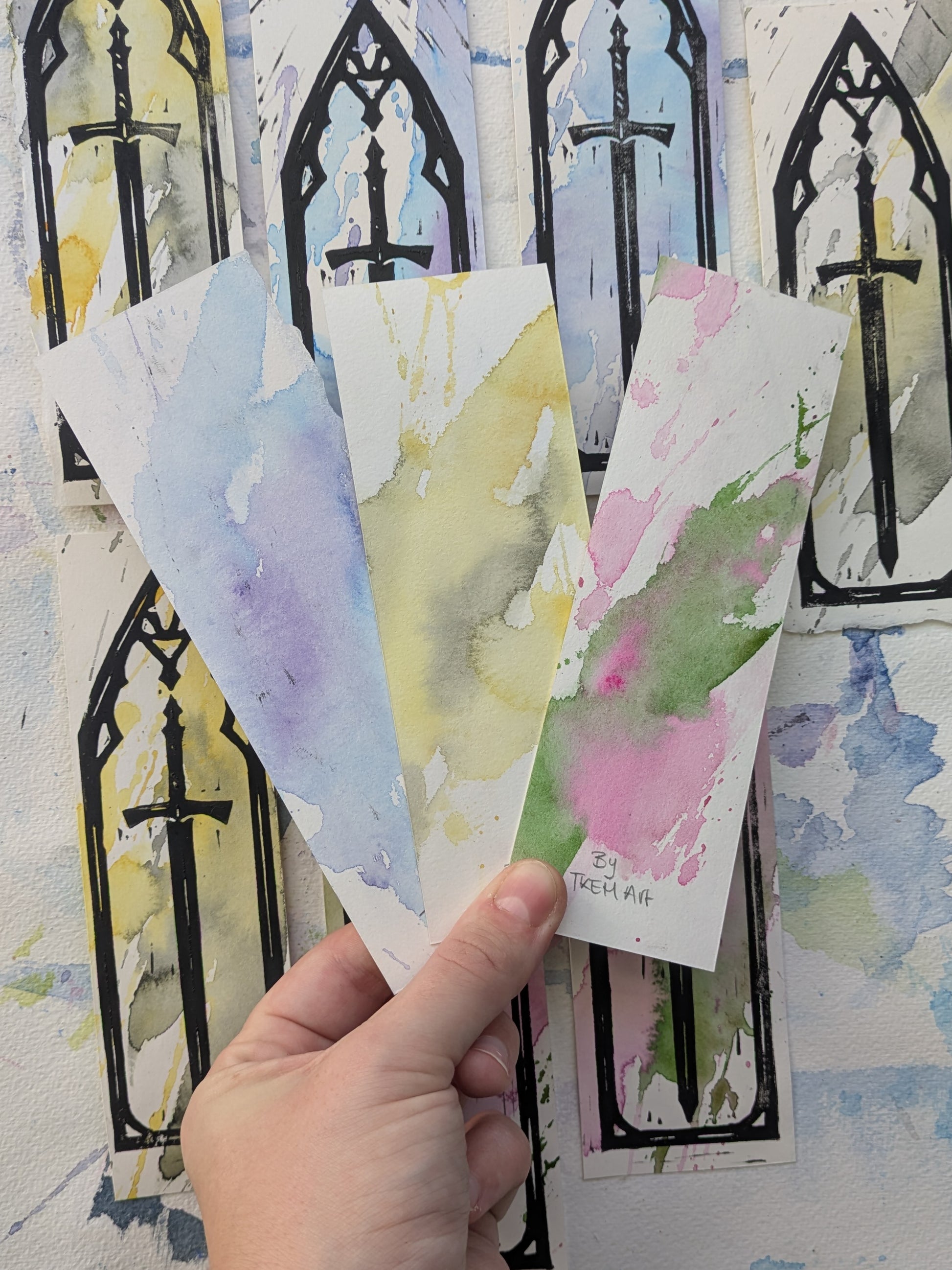 Please note, as these bookmarks are made from scrap paper leftover after painting, some edges are not straight cuts and have a rough deckled edge. This helps me reduce waste in my studio! There may also be smudges caused by the printing process, and each design is different, so the background and printing will have some variation!